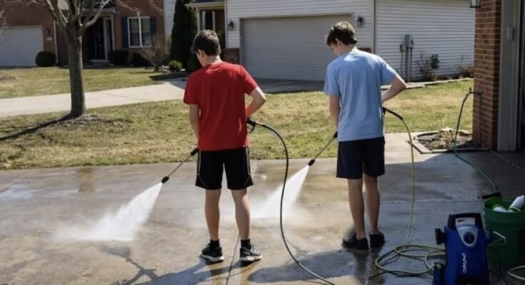 To the parents of the two boys going door to door with a pressure washing setup — this is not okay.