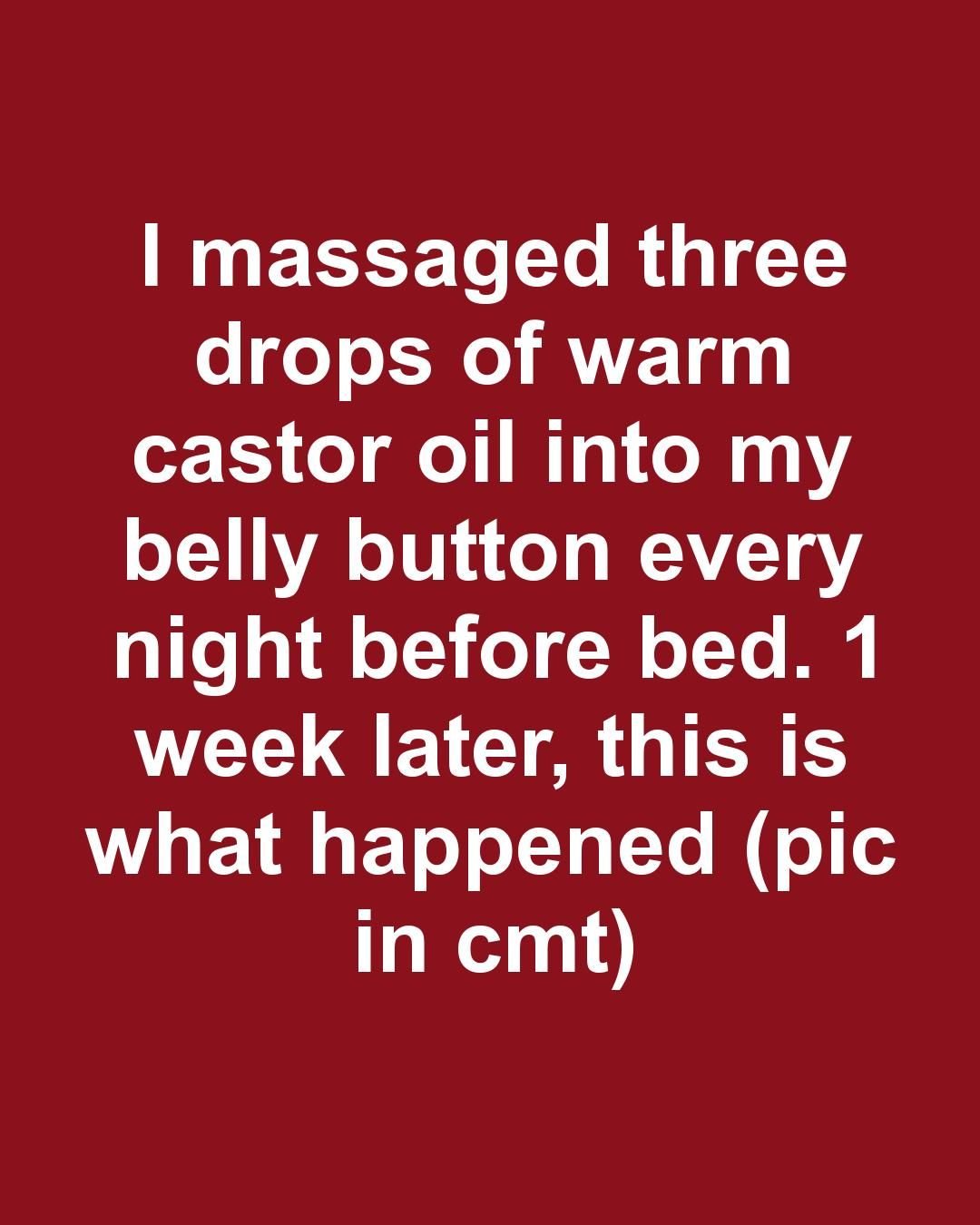 I massaged three drops of warm castor oil into my belly button every night before bed. 1 week later, this is what happened