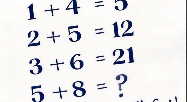 Math puzzles have a unique way of capturing our attention, even long after school days are behind us. One such puzzle that has sparked debate online is the sequence: 1 + 4 = 5, 2 + 5 = 12, 3 + 6 = 21, 5 + 8 = ?. At first glance, it looks like simple addition, but the results clearly defy standard arithmetic. This discrepancy forces solvers to step beyond conventional rules and search for hidden patterns, cumulative relationships, or creative interpretations of the symbols. Several approaches have emerged.