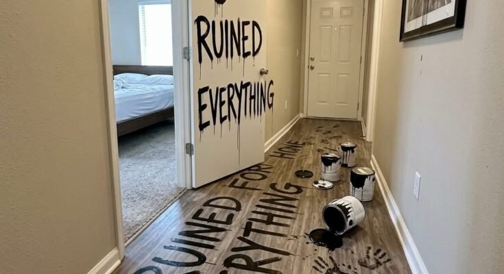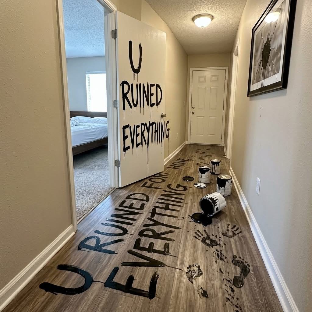 she saw lipstick on my shirt and immediately decided i cheated, no questions, no conversation, just straight to trashing the place. paint everywhere, writing all over the walls and floor like she caught me doing something crazy when in reality i was literally trying to pick out makeup for her and got it on myself