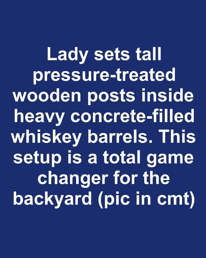 This home improvement project is perfect for those looking to add a rustic yet elegant touch to their backyard. The combination of wooden posts and whiskey barrels seamlessly blends with natural surroundings, making it a versatile choice for both modern and traditional outdoor designs. Use it to define a dining area, light a path, or create a cozy nook in your garden.