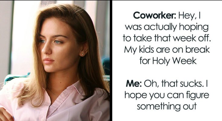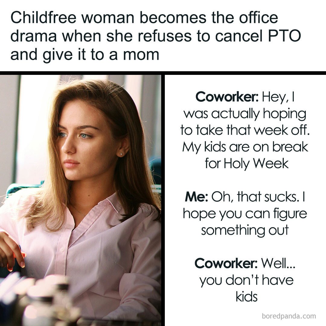 found out that she was on her own after she started receiving pressure from coworkers to give up the PTO she had already requested. They decided that because they have children, they deserve the days off more than she does. Below, you’ll find the full story that she shared on Reddit, as well as some of the replies invested readers left her.