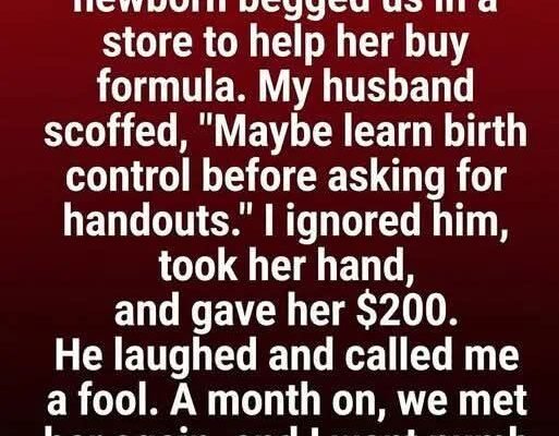 When she finally approached us, her voice was barely above a whisper. There was hesitation in every word, like asking for help had already taken more strength than she had left. My husband responded with a quick, dismissive remark—something meant to brush the moment aside. It hung in the air, uncomfortable and final. But I couldn’t focus on what he said. What stayed with me was the way her hands trembled, the quiet urgency in her expression, and the way she held her baby just a little tighter, as if protecting the only thing she had.