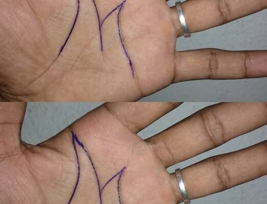 In some people, these lines intersect to form the shape of the letter “M.” Palmistry associates this marking with ambition, resilience, leadership, financial skill, and a strong drive toward success in chosen pursuits.