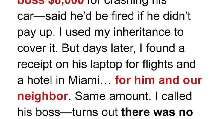 Three months later, he came home pale and shaking. He said he’d crashed his boss’s car and owed $8,000 or he’d be fired. I didn’t hesitate. I wired the money that night, thinking I was protecting our life together.